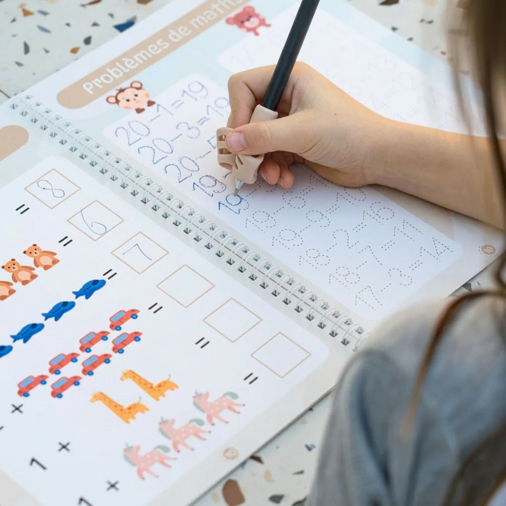 â Guides dâexercices variĂ©s â Chaque livre inclus (lettres, chiffres, formes, dessins ou mathĂ©matiques) propose des modĂšles guidĂ©s pour que lâenfant suive facilement les formes et les mouvements.